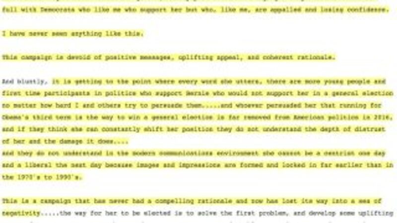 Podesta (Wikileaks) straight talk on unlikeable candidate Clintonnifty_nate10/14/16 1:42amFiled to: Hillary ClintonWikileaksPodesta EmailsEditPromoteShare to KinjaGo to permalink ReplyLeave a reply